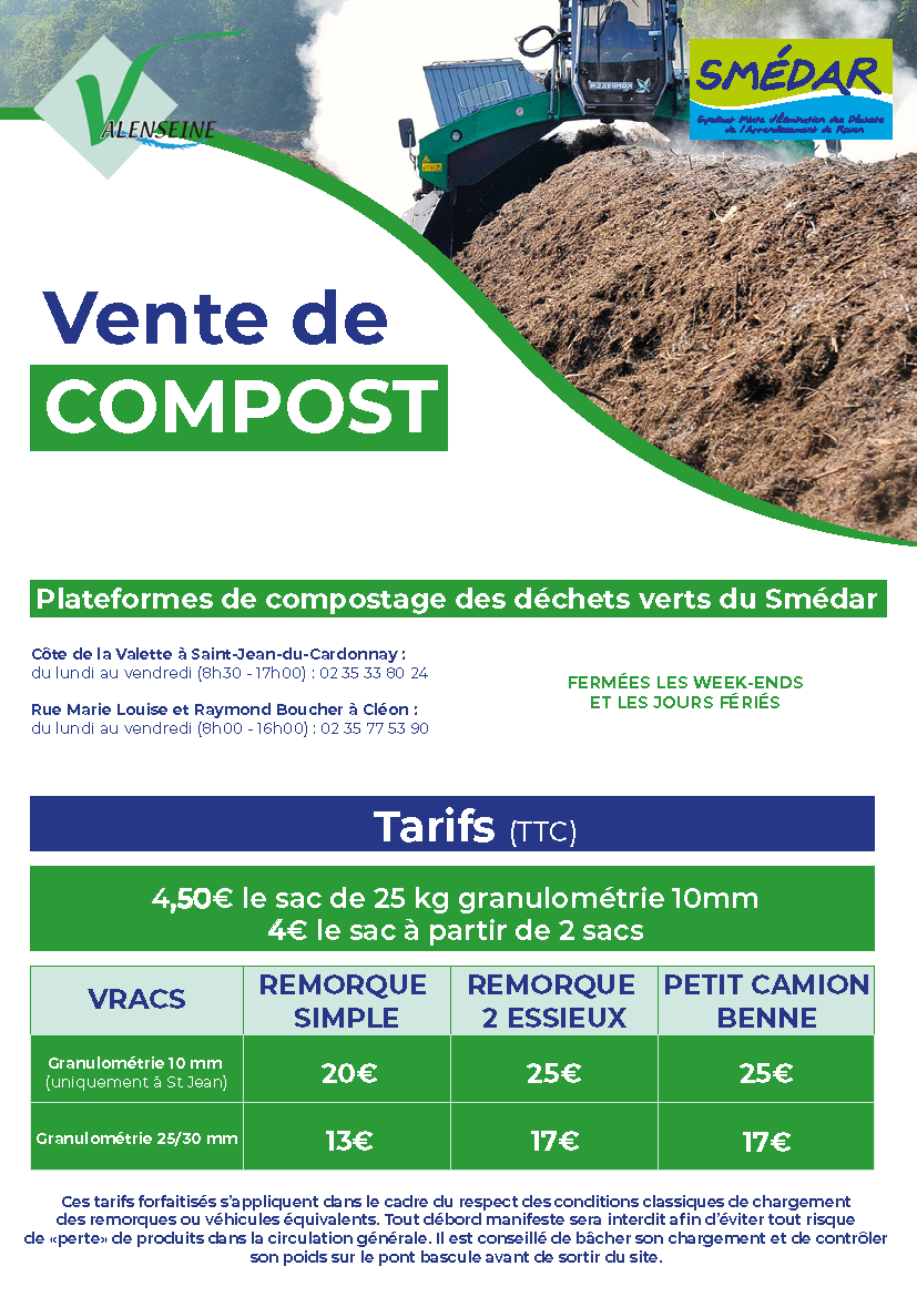 Le compost est vendu aux particuliers et aux professionnels en sac de 50 litres (4,50€ le sac, 4€ l'unité à partir de deux sacs) ou en vrac sur les plateformes de compostage de Saint-Jean-du-Cardonnay et de Cléon.